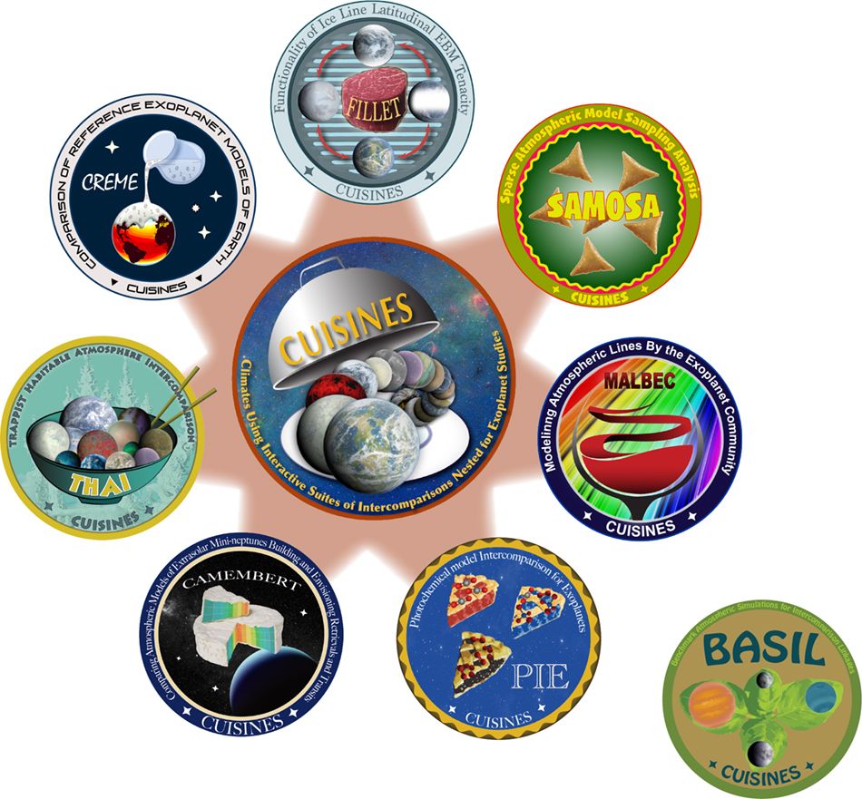 With my background in Earth Sciences, I understand the value of model intercomparison and I have created the first framework for model intercomparisons in exoplanets named CUISINES (Climates Using Interactive Suites of Intercomparisons Nested for Exoplanet Studies). This is an international project that has started with THAI and now we have CAMEMBERT, CRÈME, FILLET, MALBEC, MOCHA, PIE and SAMOSA onboard CUISINES. Yes, they all have fun acronyms related to gastronomy, another passion of mine! You can see the associated logos in one of the pictures of this article.