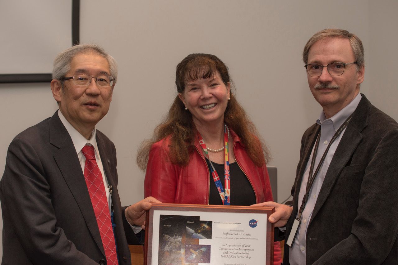 Colleen Hartman and Richard Kelley (662) present Professor Saku Tsuneta, Director General, Institute of Space and Astronautical Science, Japan,